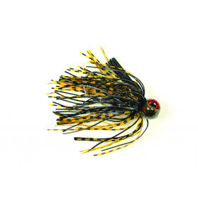 アメリカのバスプロ ハンク・パ−カ−によって設計されたラバ−ジグです。理想的なフットボ−ルヘッドデザインとラインを結ぶ位置により、ロックボトムでまさに生きているエサを演出することができます。中位のワイヤ−フックとしなやかなウィ−ドガ−ドにより、よりディ−プでロングキャストでもよりよいフッキングが可能です。また、トレ−ラ−がずれにくい構造になっています。
