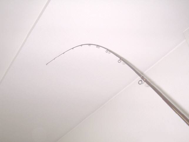 トップから7ヶ目のガイド位まで曲がります。(トップから約71cm位)CBR783とCBR781を比べると、CBR781はCBR783よりも多少細めのブランクでCBR783よりも多少柔らかいアクションです。