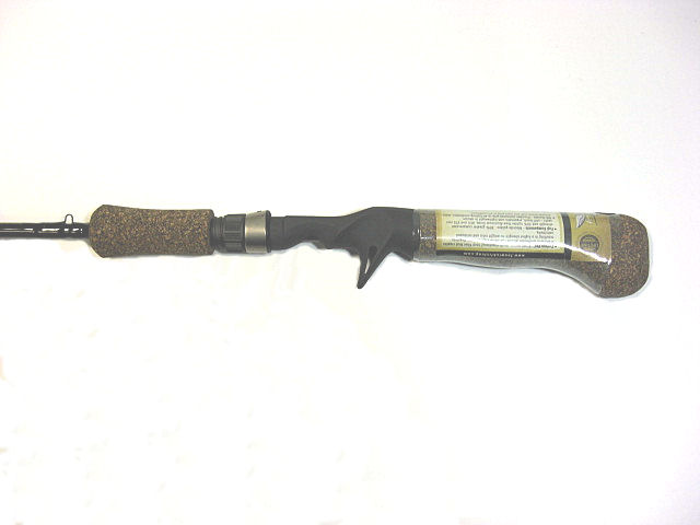 軽く強いカ−ボンベイルブランクはそのままに、ガイドはアルコナイトに、またグリップは以下のようなスタイリッシュなダ−クブラウンのコルクグリップに変わりました。
