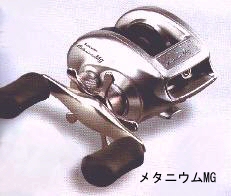 22メタニウムMG(右)・・・メタニウムのボディをマグネシウム合金に置き換えることで、190gという軽量化を実現!さらに超々ジュラルミンを採用した精密バランス軽量チタンコ−ティング・ブランキングスプ−ル、ワンタッチでブレ−キ力を調節できるSVS等、使いやすさを追求した軽量モデルです。